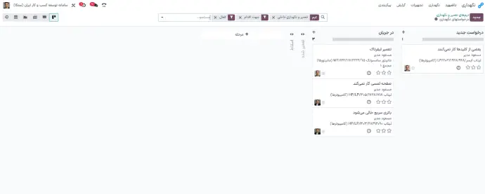 در نمای کانبان، درخواستهای جدید در ستون درخواست جدید ظاهر میشوند. کاربران میتوانند درخواستها را از طریق مراحل مختلفی مانند در حال انجام، تعمیر شده و اسقاط جابجا کنند یا با استفاده از نوار نشانگر مرحله داخل هر درخواست، مرحله آن را تغییر دهند. پس از تکمیل درخواستها، مقادیر MTBF و MTTR تجهیزات بهروز میشوند.